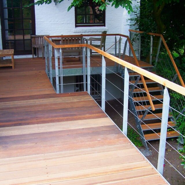 Nasze balustrady i schody zewnętrzne wyróżniają się trwałością i odpornością na warunki atmosferyczne. Konstrukcje tarasowe, które wykonujemy, zapewniają komfort i styl, idealnie wpisując się w potrzeby nawet najbardziej wymagających klientów.